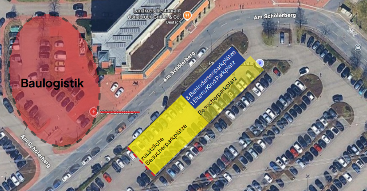 Ab dem 19. Januar 2026 wird auf dem Besucherparkplatz ein Bauzaun errichtet. Anschließend werden die Baulogistikcontainer für die einzelnen Gewerke sowie die Bauleitung dort aufgestellt, sodass der Parkplatz nicht mehr zur Verfügung steht.